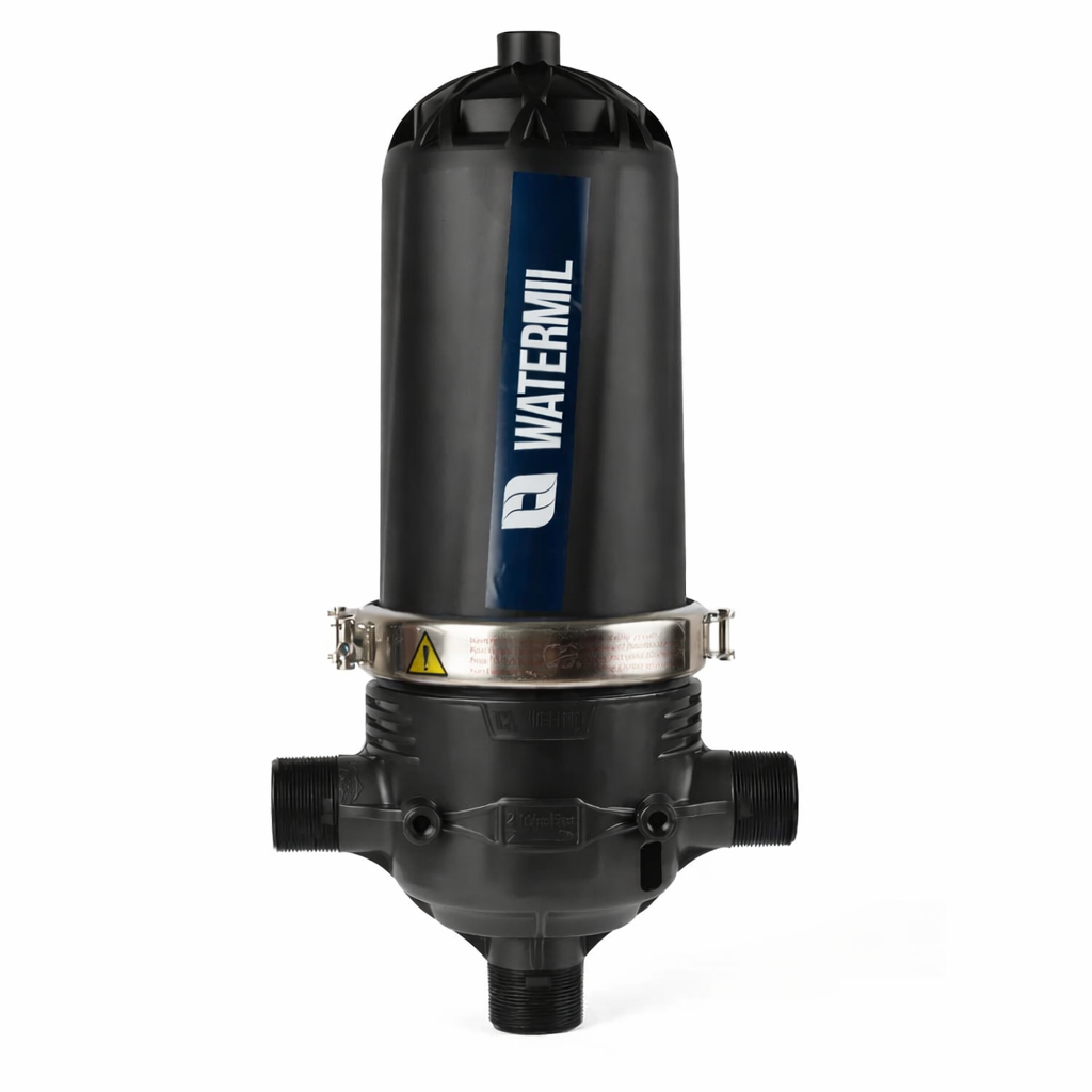 Profesjonalny filtr dyskowy Watermil 2" typu T przeznaczony do mechanicznej filtracji wody w instalacjach nawadniających i przemysłowych o dużej wydajności. Skutecznie zatrzymuje piasek, muł oraz drobne zanieczyszczenia stałe, chroniąc linie kroplujące, zraszacze, elektrozawory i pompy przed zapychaniem oraz uszkodzeniem.