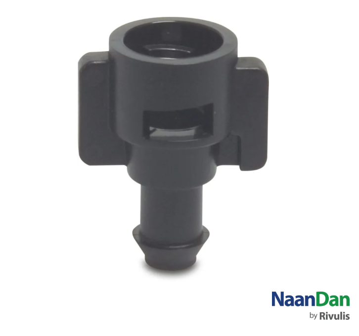 Bagnet Hadar typ F to element montażowy umożliwiający stabilne osadzenie głowicy mikrozraszacza w instalacji nawadniającej. Służy do połączenia mikrozraszacza z przewodem PE lub wężykiem elastycznym, zapewniając prawidłowe ustawienie wysokości i kierunku zraszania.