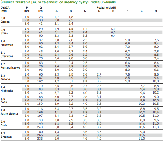 równomierny, stabilny wzór zraszania
