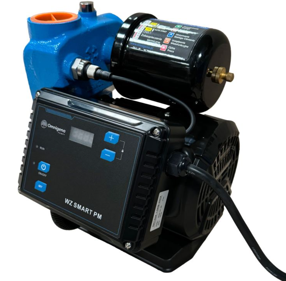 Omnigena WZ 900 SMART PM to nowoczesna pompa hydroforowa z wbudowanym falownikiem (inwerterem), która automatycznie dopasowuje prędkość obrotową silnika do aktualnego zapotrzebowania na wodę. Dzięki temu utrzymuje stałe ciśnienie w instalacji, ogranicza zużycie energii i wydłuża żywotność całego systemu.
