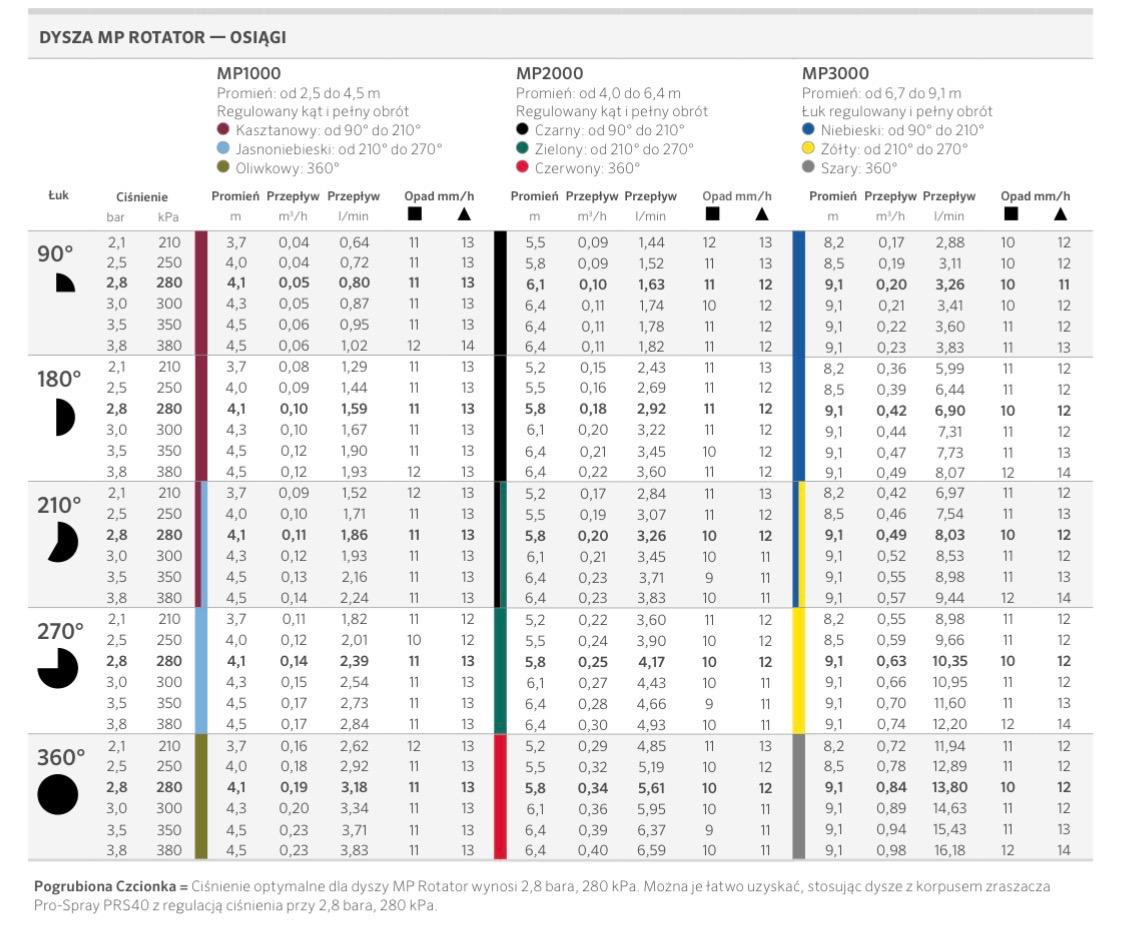 mieszaj w jednej sekcji wyłącznie dysze MP Rotator
