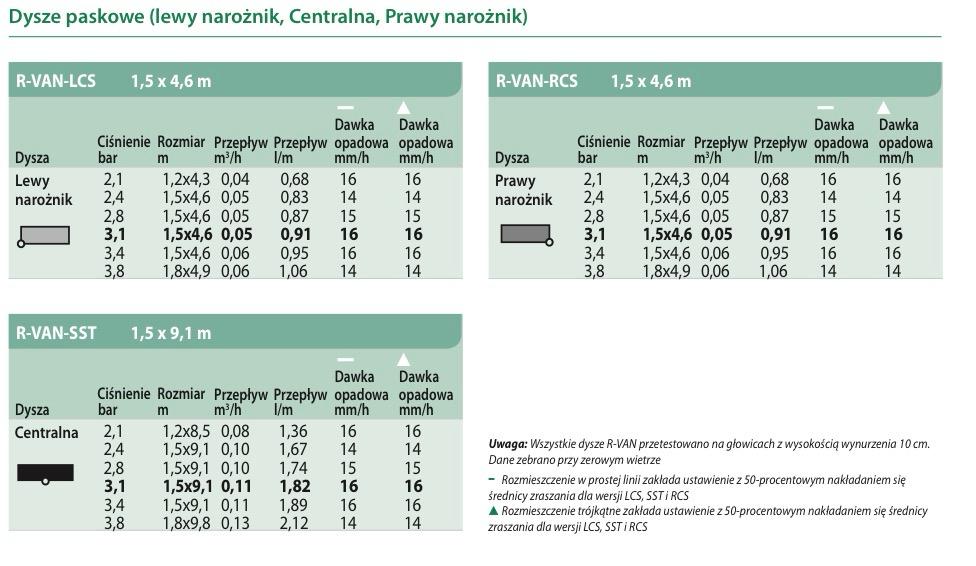 | Kształt zraszania | pas boczny – obustronny |